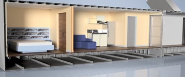 Our square steel shelters are created to feel more like a home inside, with straight walls and doorways. Designed to perform above ground or below ground, these shelters are excellent protection from major security threats, natural and manmade. Our bunkers are fully insulated, plenty of storage and comfort.